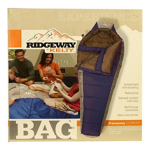 BIG BUCKS OFF hot bargain for the cold - weather camper! Ridgeway by Kelty 0 Mummy Sleeping Bag. If you're the kind of adventurer who thinks the words "February" and "tent" make perfect sense together, here's the Kelty Mummy Bag that insulates down to +0F: Durable polyester shell; Soft, smooth polyester lining; Lightweight, lofty (and of course, warm) polyester fill; Sculpted drawstring hood and oversized, insulated draft collar help hold in heat; Mummy profile, 34 x 88"; Fleece-lined box foot; Quilt-through construction to keep fill from shifting; Media pocket; Nylon carry bag. 4-lb. fill weight. Weighs 8 lbs.; Machine wash / dry. Imported.; Slide on into this great Close-Out deal before bedtime tonight! Ridgeway by Kelty 0 Mummy Sleeping Bag